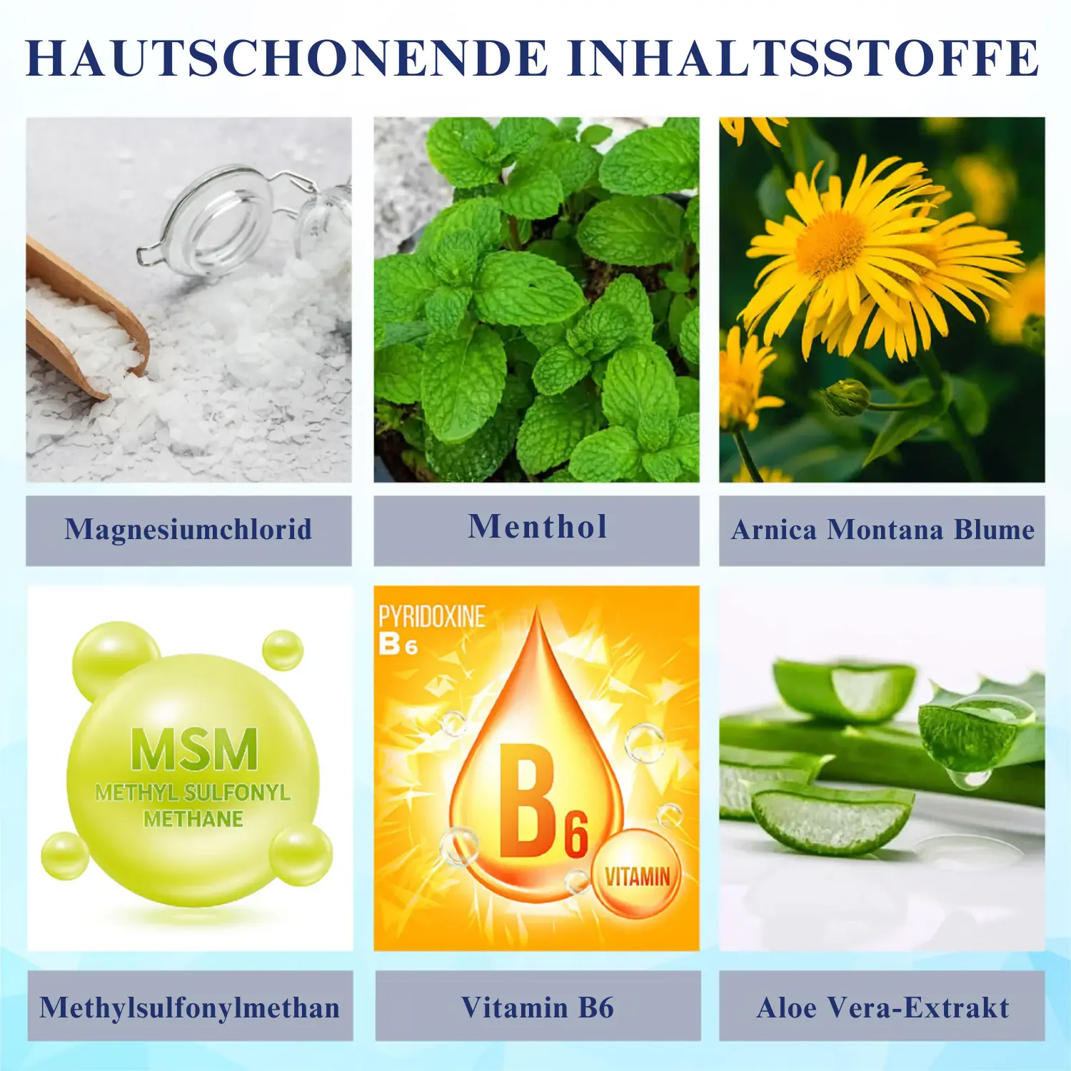 Die Rollbewegung sorgt für eine sanfte Massage, die die Durchblutung anregt und gleichzeitig dafür sorgt, dass Magnesium tief in die Haut eindringt.